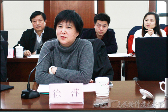 高新区管委会徐萍副主任在听取了专家组的意见和改进建议后对专家组的辛勤劳动表示感谢,她指出,苏州高博软件技术职业学院建院以来建设和发展成绩显著,在培养区域经济社会发展所需要的高素质技术技能人才方面发挥了应有的作用。她表示,高新区将一如既往地支持学院发展,积极为学院搭建发展平台,办好苏州的高职教育。