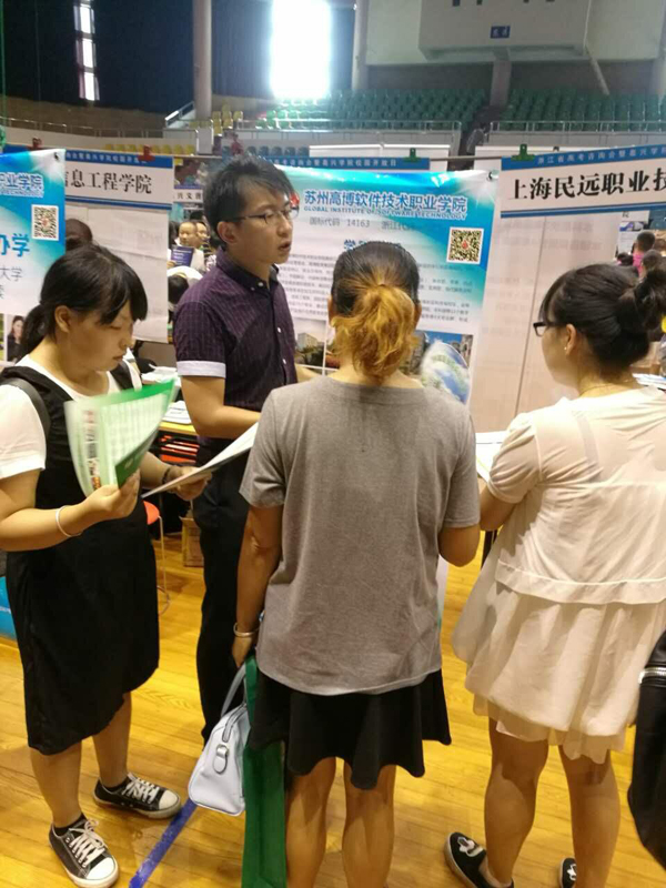 7月23日,苏州高博软件技术职业学院2016高考招生分组核心成员、学院招生就业处办公室主任张青、招生骨干吴鑫分赴浙江省嘉兴市积极开展高考招生咨询会活动。