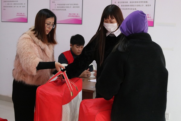 严冬来临,寒意渐浓。为了让家庭经济困难学生感受到学院领导及全院师生对他们的关爱,让寒冷的冬季变得温馨和谐,扎实做好“精准扶贫”工作,确保结对帮扶活动取得实效。近日,在学院徐子良副院长的亲自带领下,学生处邹艳星处长、胡赛书记、周萍主任在爱心小屋对贫困学生开展了“寒冬送温暖”活动,为每一位受助学生发放一床棉被,让贫困学生在寒冷的冬天里感受高博学院的温情和关爱。
