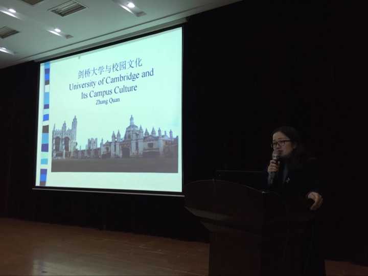 张权教授首先从剑桥大学的基本情况、学院构成、建筑风格、世界影响力方面让我们对世界名校有了初步认识,接着又给我们介绍了剑桥历届的著名校友,比如牛顿、达尔文、霍金这些我们耳熟能详的生物学家、物理学家们。拜伦、徐志摩等著名诗人和他们的代表作。张权教授还分享了自已创作的才华横溢的剑桥散拾。接着张教授给我们普及了剑桥一些有趣的名称和说法的含义和由来。最后,张教授给我们描述了剑桥大学丰富多彩的校园生活并寄语祝福勉励现场聆听讲座的500多名在校大学生们,珍惜在校时光,勤奋学习、奋发有为,勇于创造、开放创新!