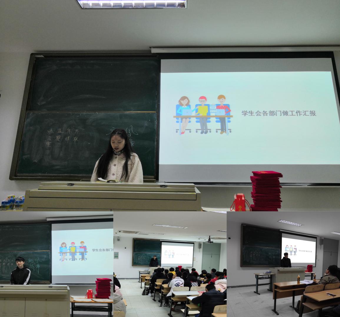 会议的第二项议程,由学生会各部门进行工作汇报,各部门部长总结了自己部门一个学期以来的工作,分析不足、展望未来。紧接着由大一学生会代表王宇辰进行发言,王宇辰同学讲述了他入学半年来在学生会的主要工作及收获,号召大家在学习之余多参与校内活动,不仅可以在更多的人面前展现自己而且还可以发现不足、提升个人能力。