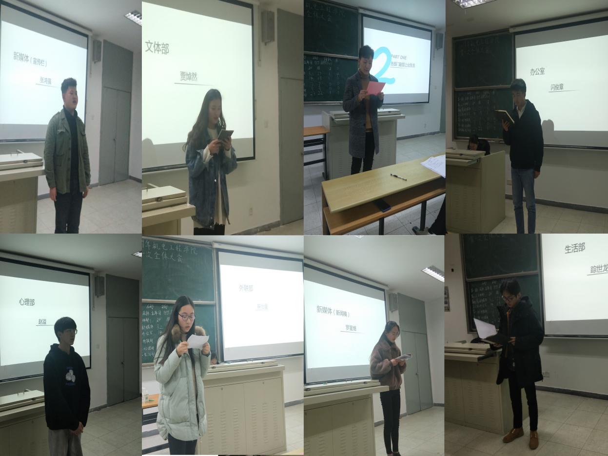 本次大会共有三项议程。首先学生会副主席徐佳琦总结了上学期的工作,对辛苦付出的每一位学生会成员表示感谢,并汇报了本学期学生会的工作计划,为学生会的下一步工作指明了方向;接着由各部门代表发言,各部门代表都不约而同的表达了全心全意为广大同学服务的宗旨,发表了个人对如何去做一名优秀学生会干部的见解,同时代表们也都谈到了加入学生会的初心问题,表示一定会不忘初心、全力以赴。