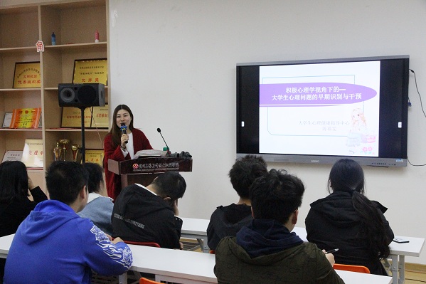 此外,3月27日下午15:30-16:30在青春健康俱乐部陈老师对学院的班级心理委员进行了主题为“积极心理学视角下的心理问题的早期识别与干预”主题培训。陈老师向在座的班级心理委员普及了一些大学生可能会遇到的心理健康问题:情绪情感问题、人际交往问题、学业困难等,希望所有的心理委员在共情的基础上,多倾听,少做评价。分析并列举了一些常见心理问题的识别。帮助他们自我探索。努力营造自尊自信、理性平和、积极向上的校园氛围。