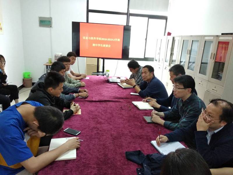 4月24日中午,信息与软件学院在学院会议室3-306召开期中教学检查学生座谈会,会议由张宏院长主持,学院领导、教研室主任、教学秘书以及我院17级和18级各专业14名学生代表出席。