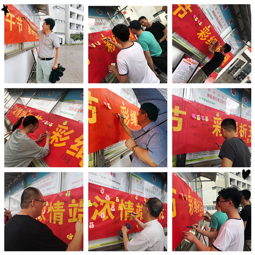 活动开始前,国际商学院分团委学生会的同学精心策划,准备物料,以保证活动顺利进行。本次活动以签名领取彩绳的形式展开,只要在横幅上签名并与祈福标语合影,便可认领一根彩绳。据《风俗通》记载:“五月五日,以五彩丝系臂,名长命缕,一名续命缕,一名辟兵缯,一名五色缕,一名朱索,辟兵及鬼,命人不病瘟”。据说,戴五色线可以避开蛇蝎类毒虫的伤害;扔到河里,意味着让河水将瘟疫、疾病冲走,人们由此可以保安康。活动期间,按照前期策划,播放提前录制好的各地方言关于端午欺祈福的音频,这吸引了不少老师、同学驻足并参与其中。大家签字系彩绳祈福,不亦乐乎。