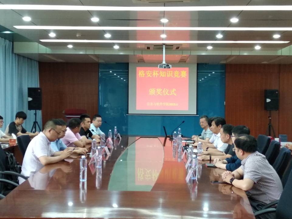 6月12日下午,信息与软件学院格安杯知识竞赛颁奖典礼在学院实训楼会议室隆重举行。高博软件技术职业学院副校长陈家颐、教务处常务副处长胡玮出席活动。格安公司江苏区经理朱海林、副经理马庆东、人事副经理张伟、华为认证专家吕道平、陆启文作为嘉宾应邀莅临。信息与软件学院院长张宏、常务副院长王彤、副院长孙涌、获奖学生代表、格安班全体学生共同参加了活动。活动由副院长孙涌主持。