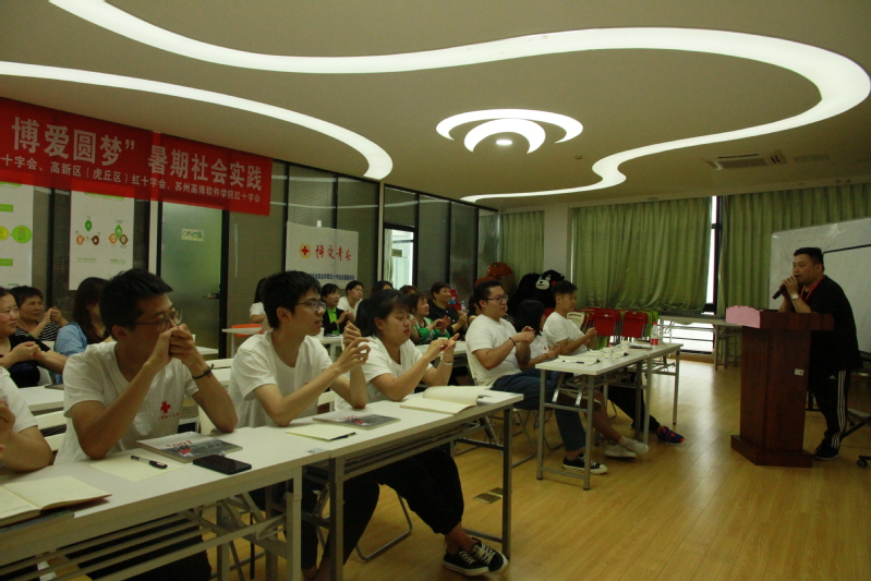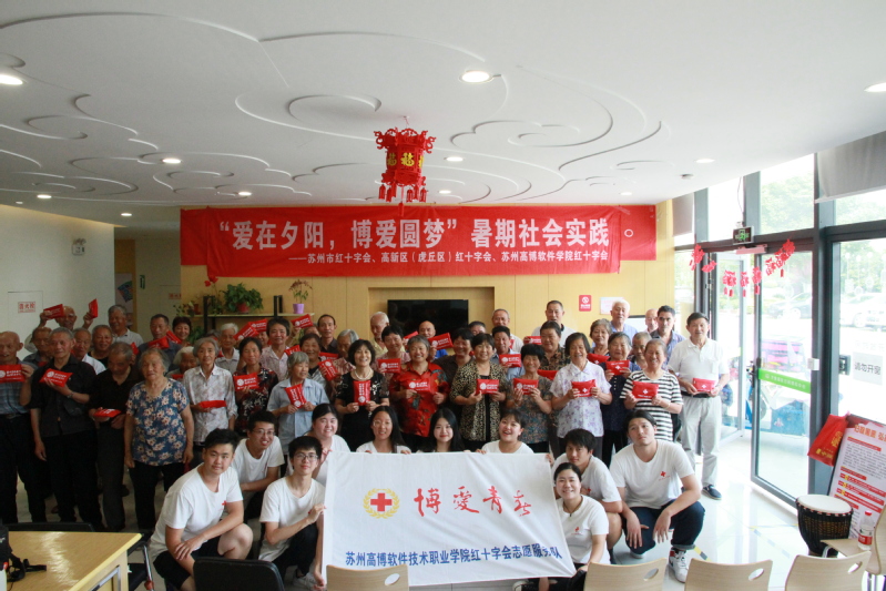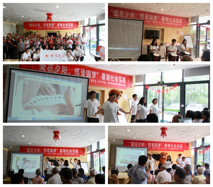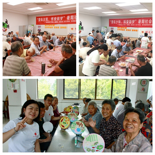 我院红十字会志愿者魏萍告诉记者说,他们是苏州市红十字会2019年“博爱青春”暑期社会实践九个市级项目之一——“爱在夕阳,博爱圆梦”暑期社会实践项目;项目主要集中在阳山敬老院、东渚龙景社区和东渚龙惠社区开展,面向老人,弘扬人道、博爱、奉献的红十字精神。为践行红十字会精神,“爱在夕阳,博爱圆梦”暑期社会实践小分队精心设计了方案,围绕主题,从项目宣传、专业学习、实践内容三个方面开展活动。