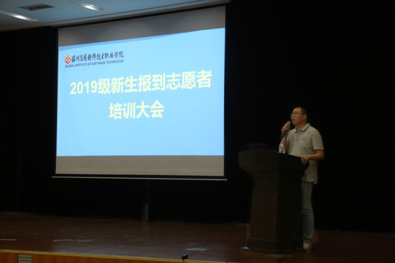 为做到安全、有序、快捷、周到,努力为广大新生营造和谐温馨的入学环境,受学校新生报到工作领导小组的委托,9月4日晚18:00,学校团委在报告厅举行2019级新生报到志愿者培训大会。学生处处长邹艳星,学生处副处长、团委书记胡赛,各二级学院分团委书记和300多名迎新志愿者共同参加培训。