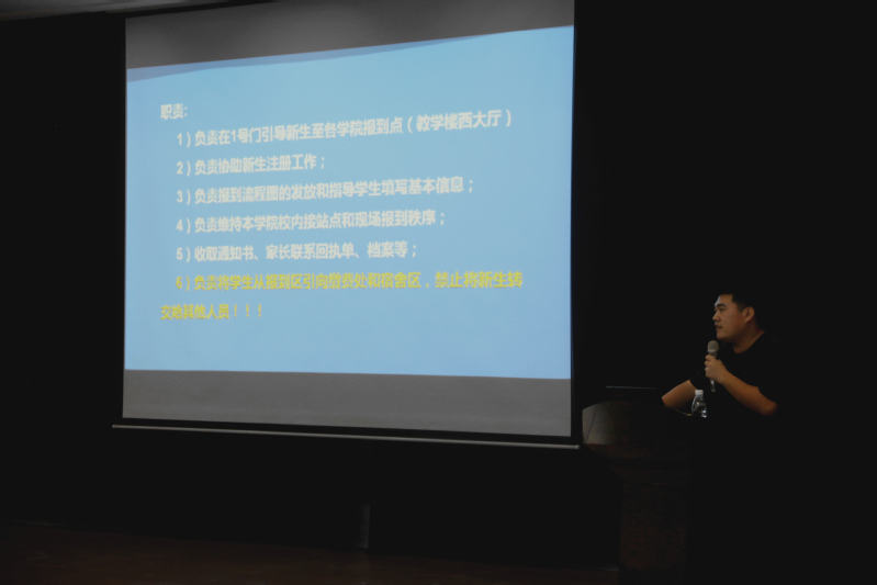 学生处副处长、团委书记胡赛为全体志愿者做培训