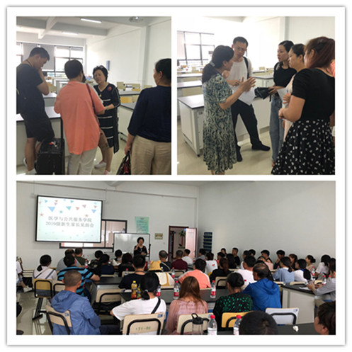薛小玲院长首先感谢家长对学校及学院的支持和信任,并向家长介绍了医学与公共服务学院概况、师资队伍、专业人才培养模式、学生的学习与实习就业、升学等情况。同时希望2019级新生珍惜学院特聘教授、校外专家授课的学习机会,认真学好专业知识,夯实基础,全面发展。