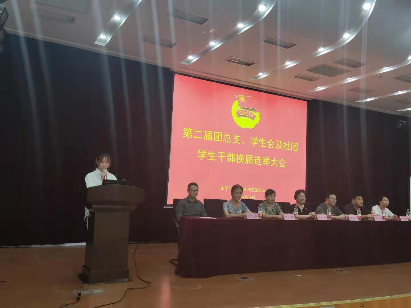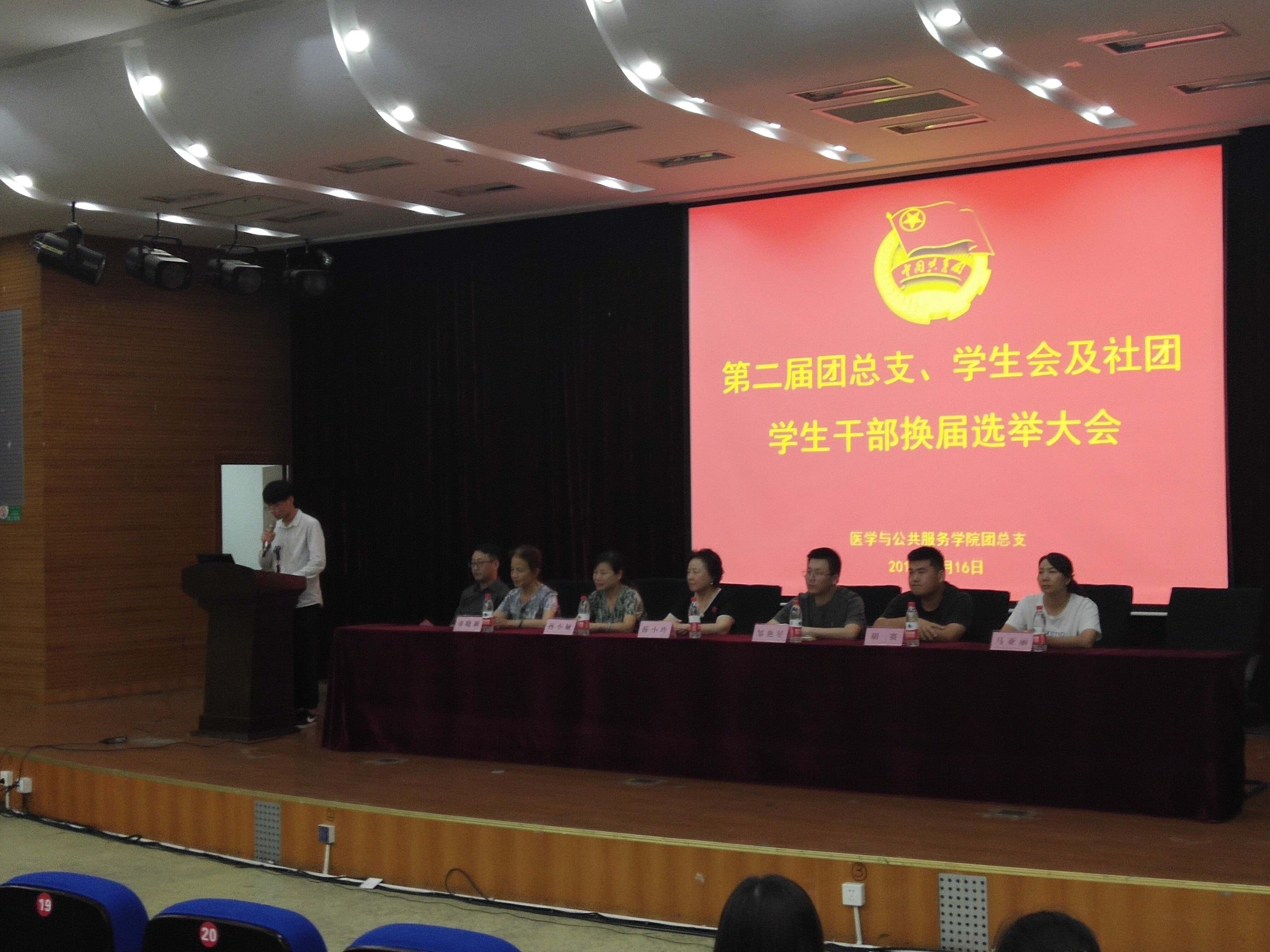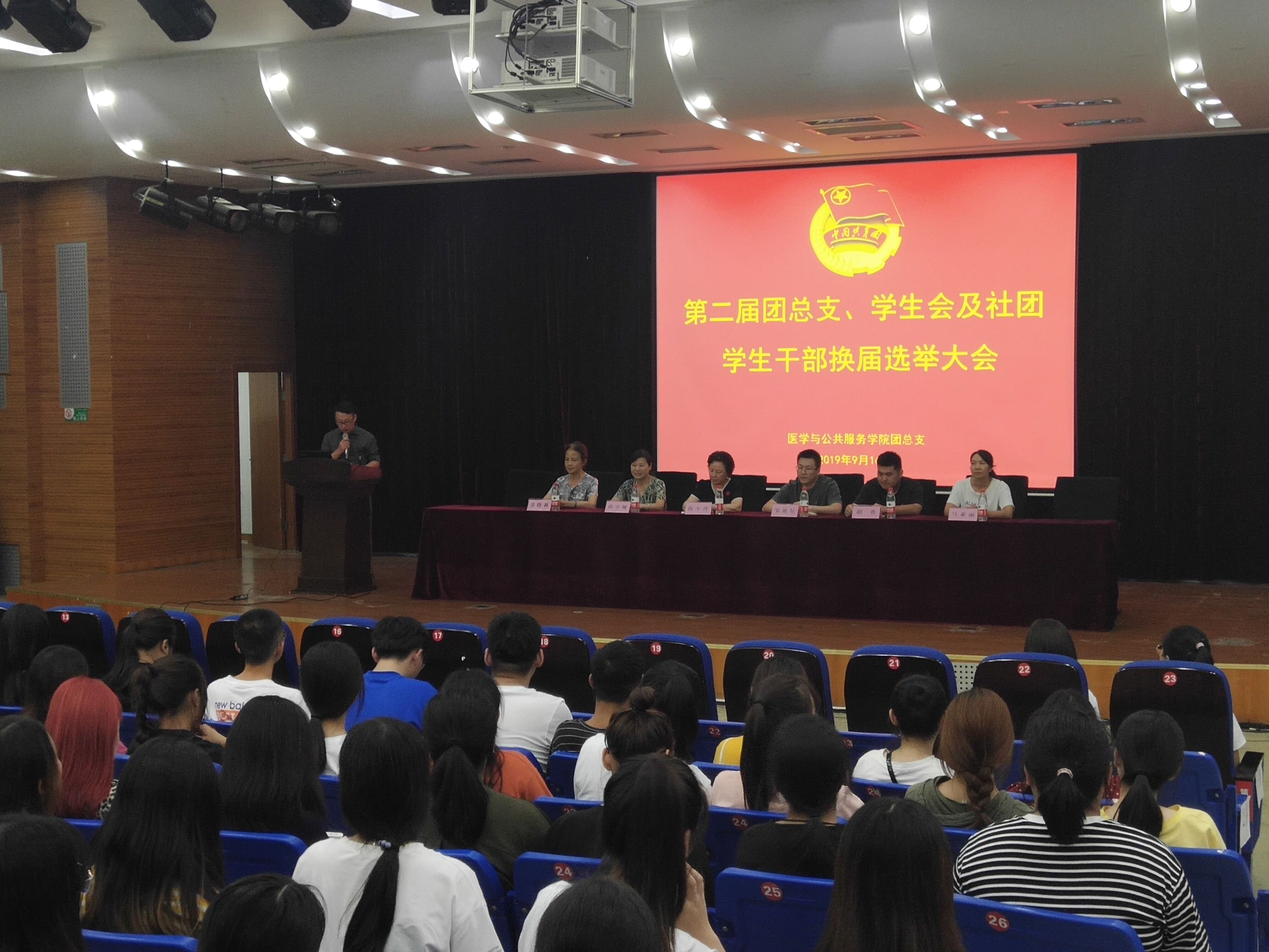 2019年9月16日晚18:00,医学与公共服务学院第二届团总支、学生会及社团学生干部换届选举大会在校学术报告厅顺利举行,大会由医学与公共服务学院学生工作办公室主任赵洪鹏主持。校长特别助理、医学与公共服务学院名誉院长薛小玲,校学生工作处处长邹艳星,副处长、校团委书记胡赛,医学与公共服务学院院长孙小娅、副院长章晓莉、副院长马亚丽,第一届团总支、学生会全体学生干部,教师选举人及学生选举人、候选人,以及学院全体教师、同学出席了本次大会。