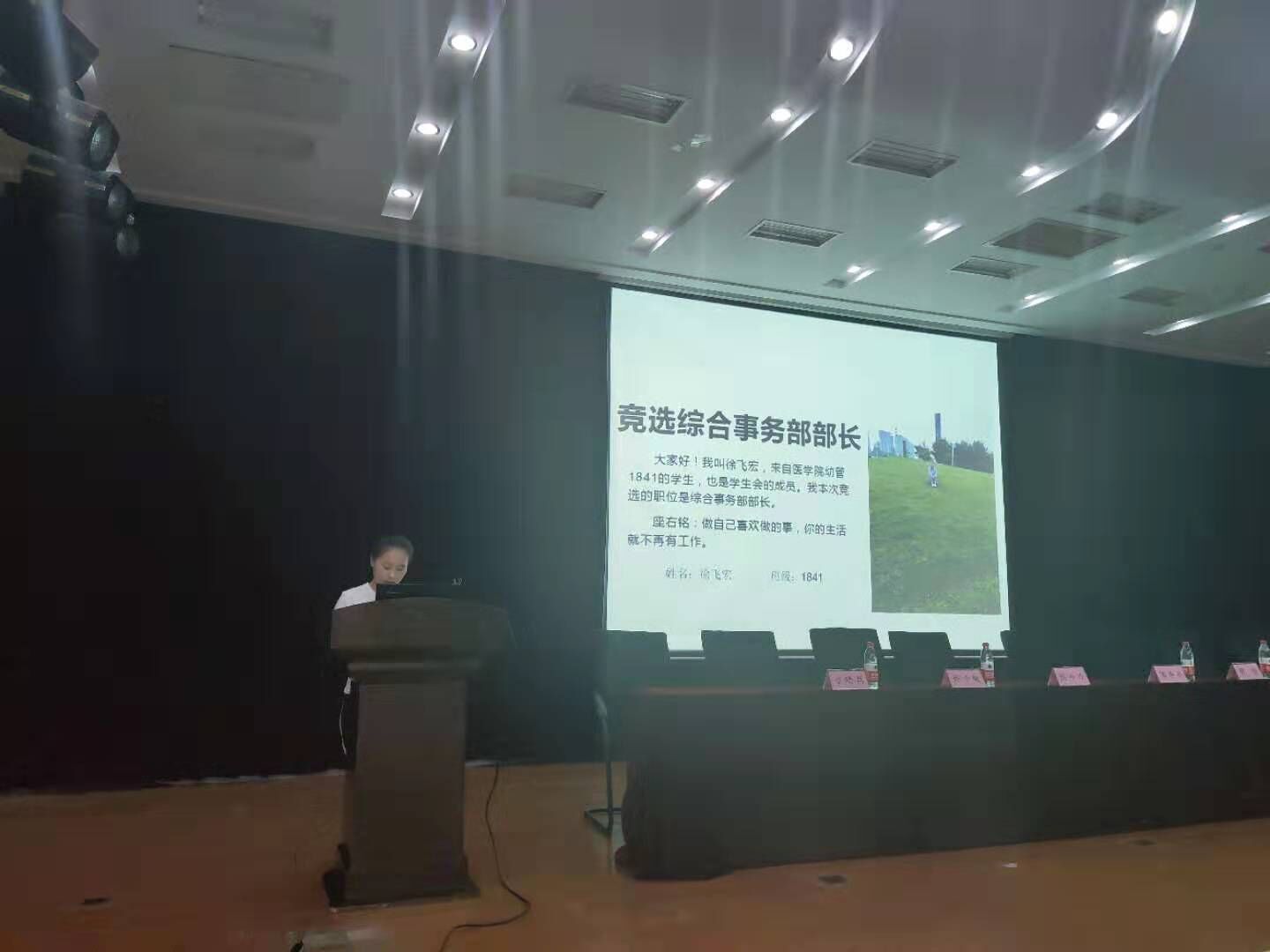甘煜婷同学向大会作学年工作汇报 辅导员江世杰宣读大会选举办法及名单
