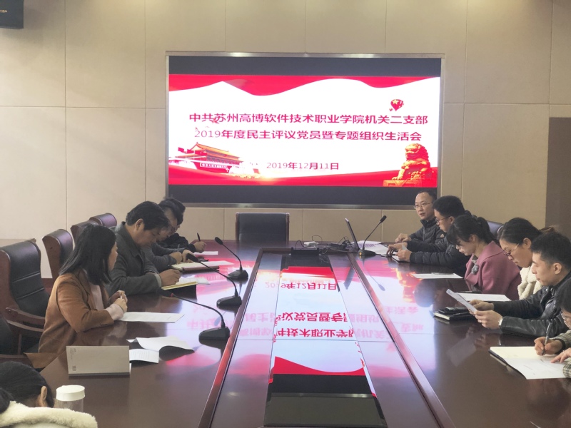 12月11日,机关二支部在行政楼101会议室召开2019年度组织生活会、支部书记述职评议会暨民主评议党员大会,机关二支部全体党员参加会议并进行相互评议。