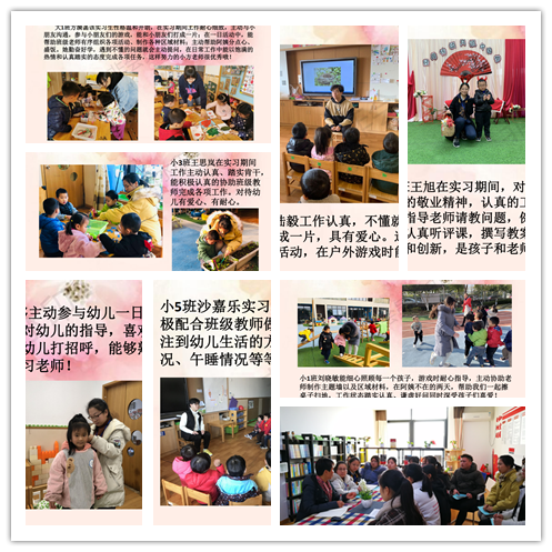 见习过程中,同学们根据学院系部的要求,严格遵守幼儿园规章制度,以一名教师的标准来严格要求自己。认真完成见习任务,多听、多看、多问,深入了解幼儿园的日常教学活动,积极参与到幼儿园班级管理、环境创设布置、五大领域活动。
