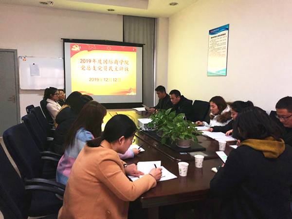 2019年12月12日中午,国际商学院党总支召开专题组织生活会暨2019年度民主评议会,全体党员参加了此次会议。会议由国际商学院党总支副书记张红主持,校党委副书记、副校长倪筱琴同志列席参加。