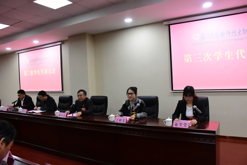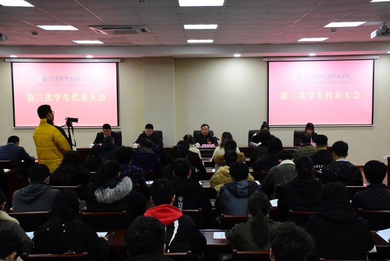 12月23日下午,学校第三次学生代表大会在行政楼215学术报告厅召开。学校党委副书记、副校长徐子良教授,苏州市学联主席丁叙文同学,学校党委学工部部长邹艳星副教授出席大会。学生处、各学院党总支、分团委、学生党支部的领导和老师与来自全校5个代表团的100名学生代表参加了大会,大会由学校党委学工部副部长、校团委书记胡赛主持。