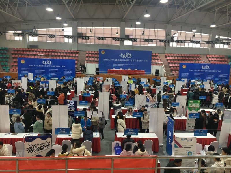12月27日,由苏州团市委、市人社局、市学联联合开展的“青春留苏”苏州市大学生就业帮扶行动暨“送岗位进校园”活动在苏州市职业大学体育馆举行。