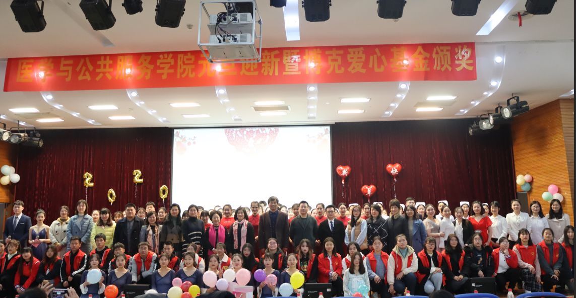 盛世华诞七十载,万众欢喜迎新年!医学与公共服务学院顺利走过2019年的成长之路,迎来2020年新的展望。为迎接19级新生、表彰年度优秀学生、答谢对医学与公共服务学院给予帮助的组织与领导的厚爱,特举办“医学与公共服务学院元旦迎新暨博克爱心基金颁奖大会”。