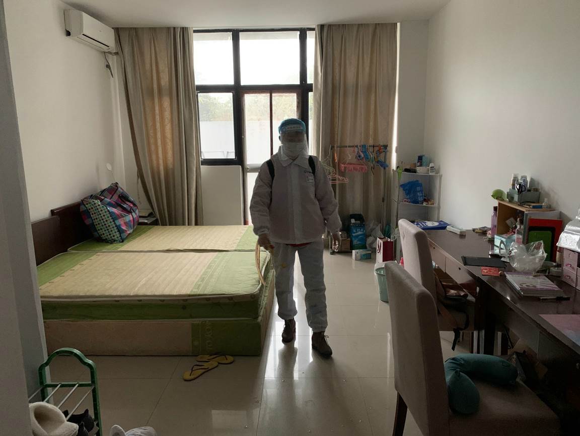 对疑似患者及密切接触者宿舍进行全面消杀,实行封闭处理