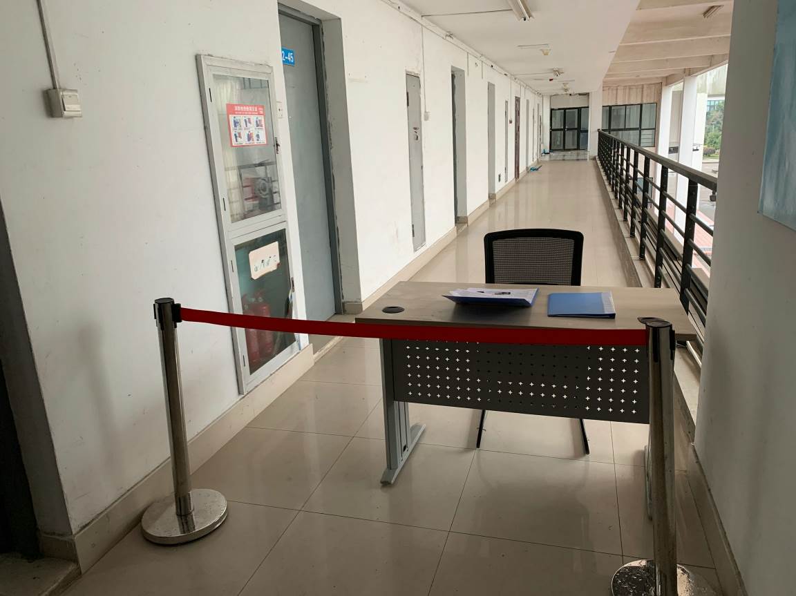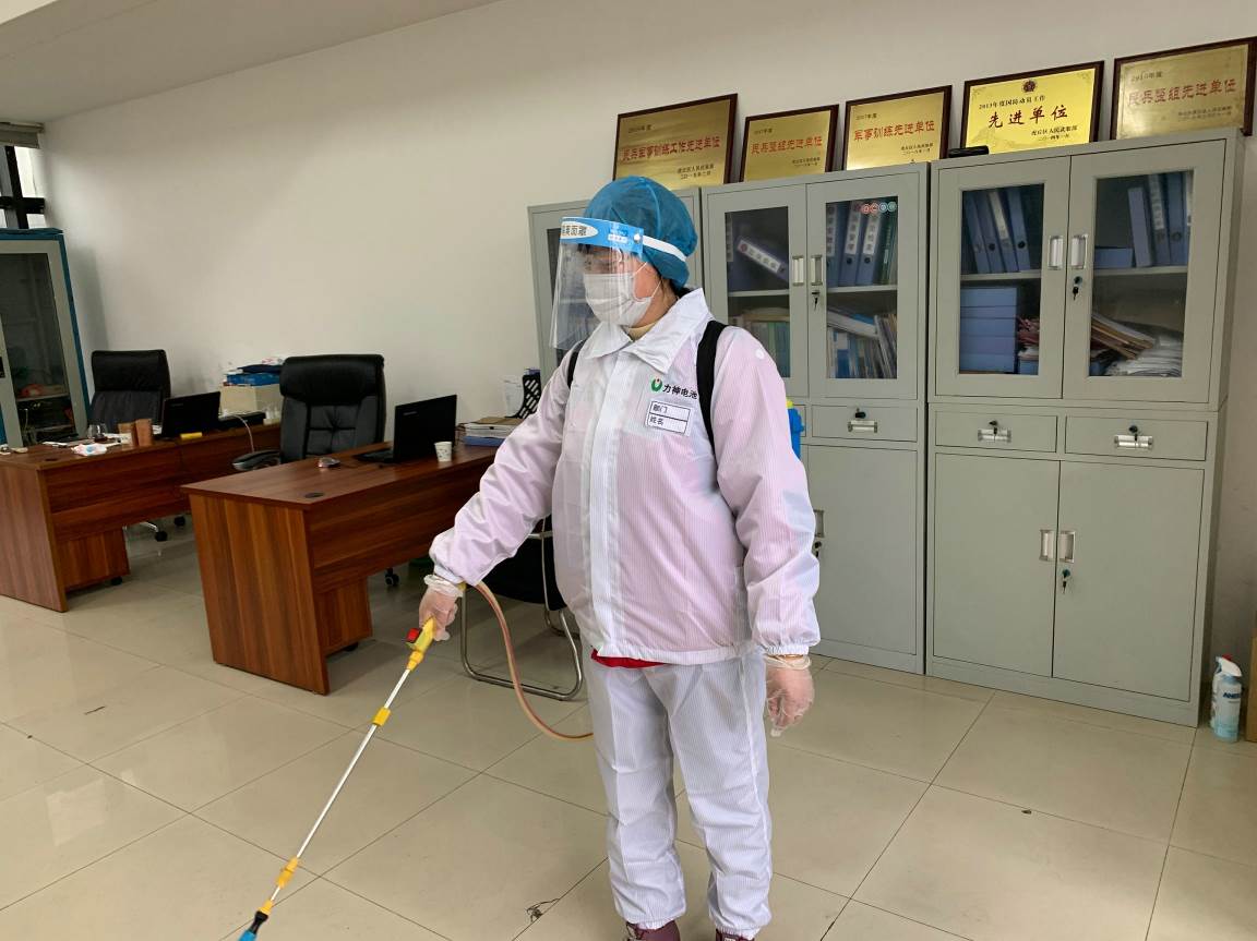 工作人员对疑似患者的办公室进行全面消杀,并作封闭处理