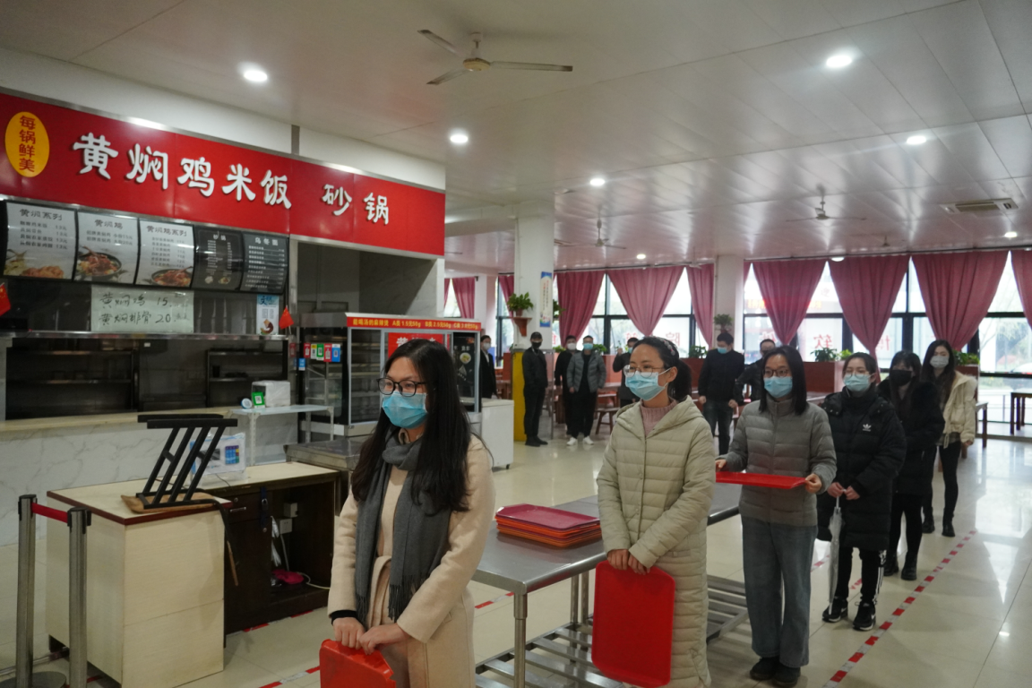 师生间隔1米,排队就餐