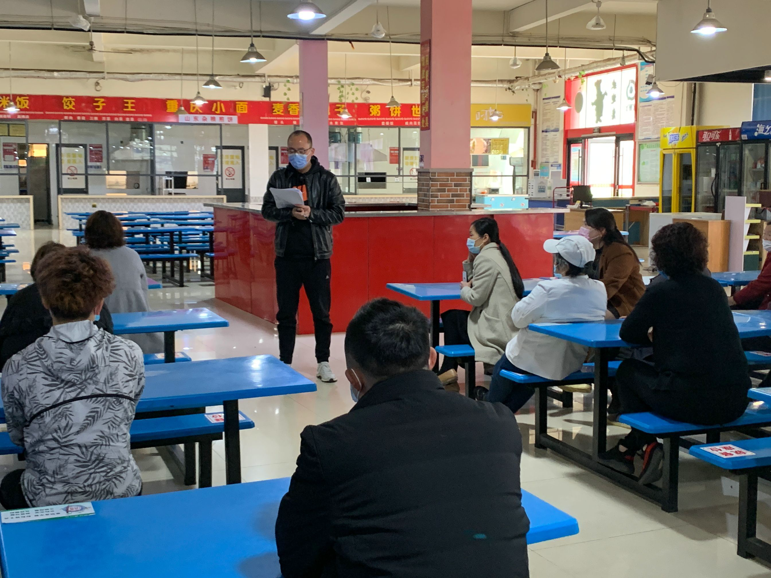 为进一步做好新冠肺炎疫情防控工作,提升校园食品安全保障水平,切实保证教职工在校集中用餐的食品安全,压实疫情防控和食品安全责任,4月3日,后勤处对学院所属食堂人员进行了疫情防控和食品安全培训,三个食堂的所有从业人员参加培训,学院张明燕副院长到会讲话。