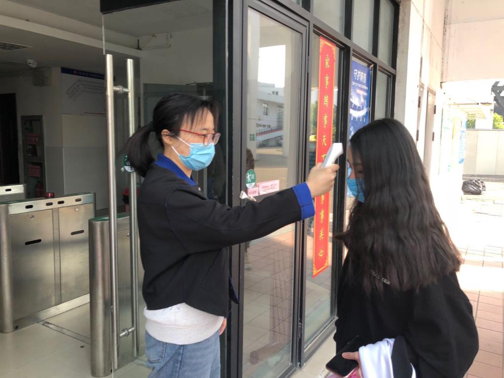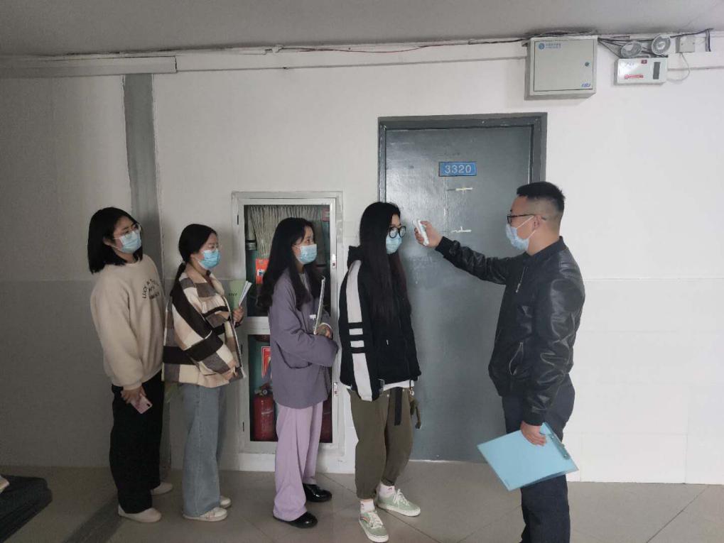 辅导员老师认真执行晨午检制度,对学生进行体温检测,了解学生身体状况,密切关注学生状态。