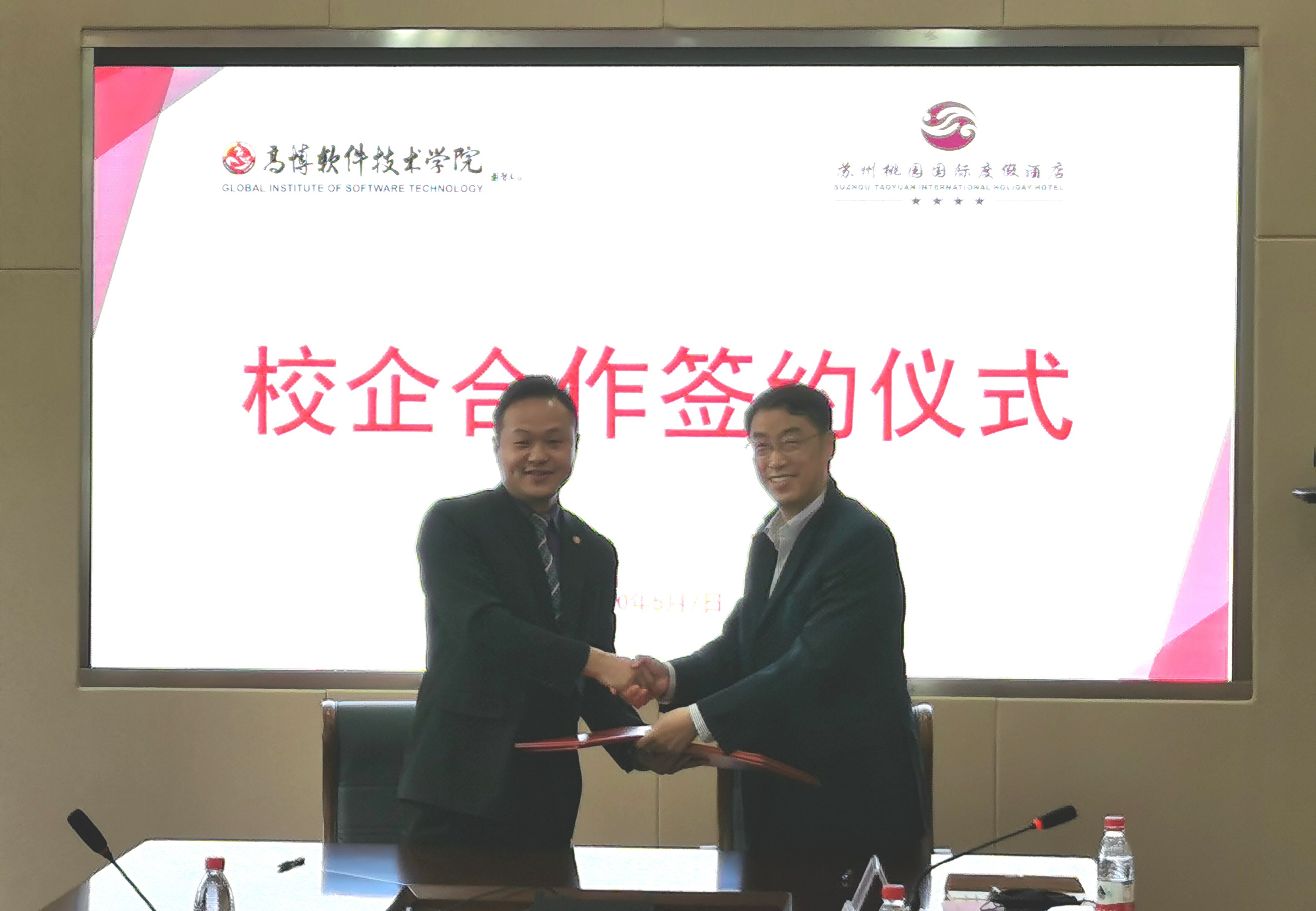 为了进一步强化和落实教育教学改革,积极推进校企深度合作,5月8日下午,苏州高博软件技术职业学院国际商学院、苏州桃园国际度假酒店校企合作签约仪式在beat365官网举行。酒店执行董事兼总经理刘星、总经理助理韩丽萍、行政总监陈鹰;学校副校长陈家颐、副校长张建初、国际商学院院长王则斌、国际商学院副院长郭泉、国际商学院旅游系主任魏向东、国际商学院经济系主任乔桂明等领导出席签约仪式。仪式由校企合作办常务副主任马浩主持。