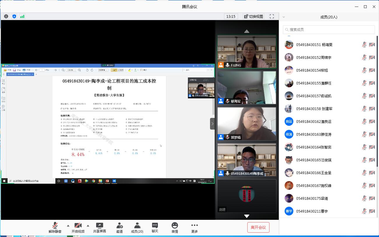6月13日,2020届南京理工大学自考助学艺术设计专业(环境设计方向)和工程造价管理专业,共130名学生参加了本科毕业设计答辩。本次答辩由南京理工大学、高博艺术与建筑学院、继续教育学院共同组织,采用腾讯会议形式进行,全程录屏。