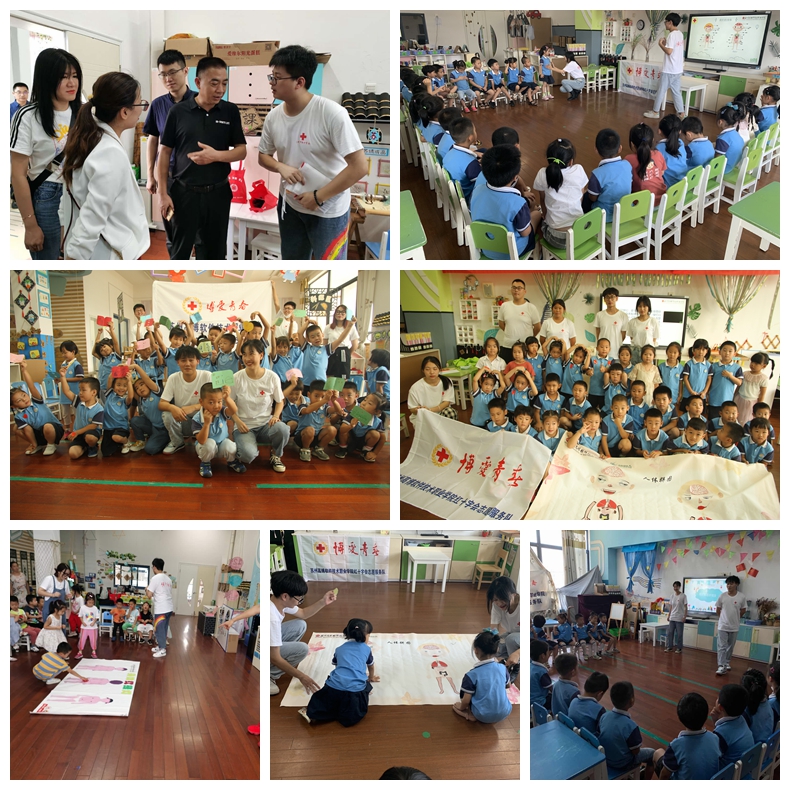 下午14:45左右,随着孩子们午睡结束,高新区东渚实验幼儿园两位园长带着马部长和许副会长前往活动教室,其中一个教室里,孩子们听着志愿者哥哥讲解垃圾分类的标准,并学着把不同的垃圾进行分类投放到垃圾桶里,为了让志愿服务有更好的活动效果,高博红十字会的志愿者们精心制作了垃圾分类的道具,还设计了垃圾分类飞行棋,帮助幼儿在玩中学,学中玩;另一个教室里,孩子们跟着高博红十字会的志愿者哥哥姐姐们在认识自己的身体里的红绿灯,识别危险信号,加强自我保护,通过在海报上贴出身体的红绿灯以及学习《保护歌》,不仅帮助幼儿学习了生理知识,还加强了他们自我保护的意识。