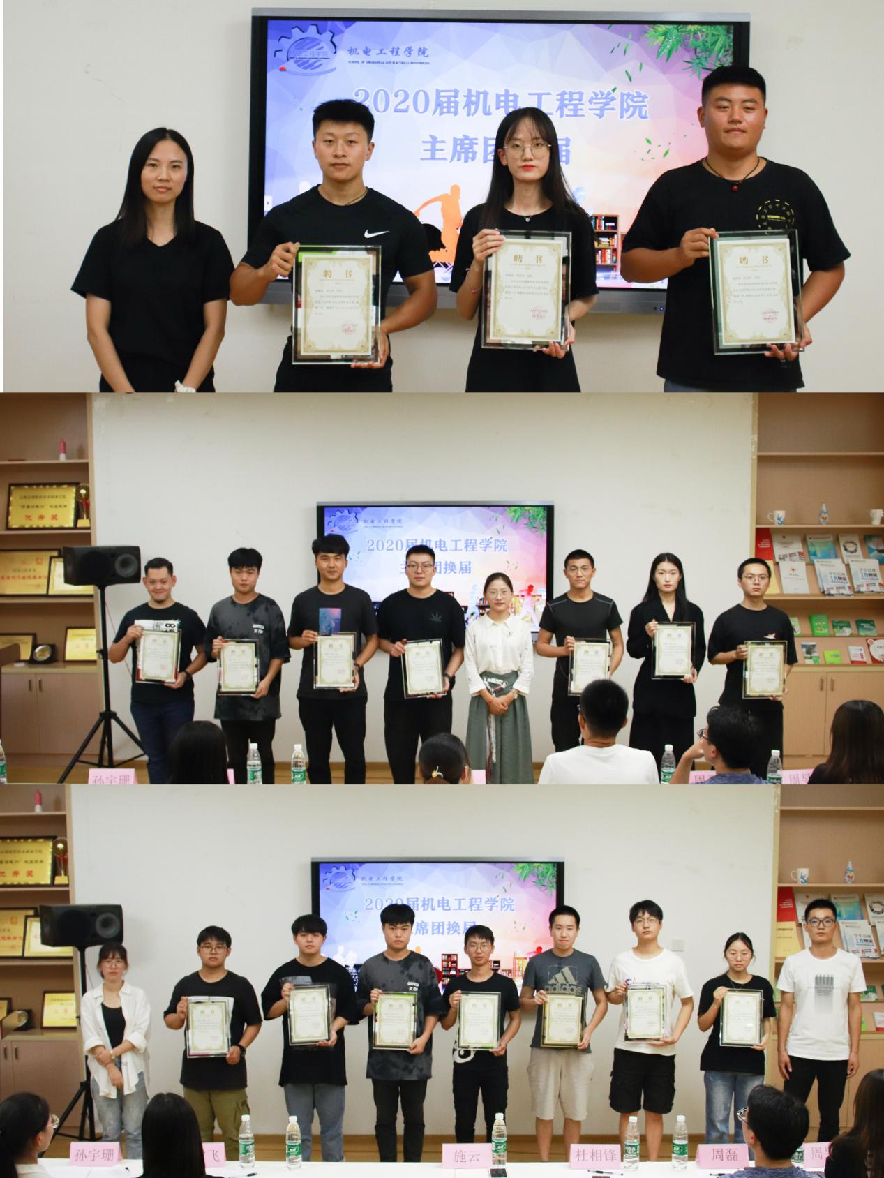 竞选结束后,机电工程学院学生党支部书记赵雪飞和各位辅导员老师们分别为2019级学生会干部颁发聘书。