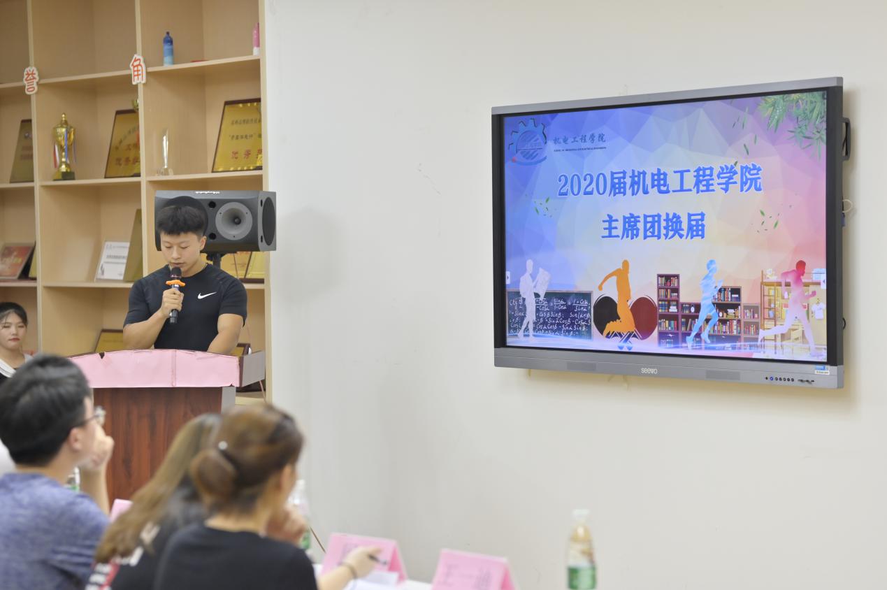 为进一步完善和规范我院学生干部的选拔任用工作,加强学生干部的队伍建设,2020年9月16日下午18时,我院在青春健康俱乐部成功举办2020级机电工程学院学生会换届大会,机电工程学院党总支副书记陈粟裕、机电工程学院全体辅导员以及2019级优秀学生干部代表出席本次换届大会并担任评委。