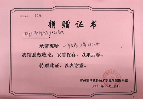 奉献爱心,收获希望。为了有效利用图书资源,传递知识与爱心,10月11日,国际商学院的同学们积极响应学校号召,向校图书馆捐赠图书共计666册。