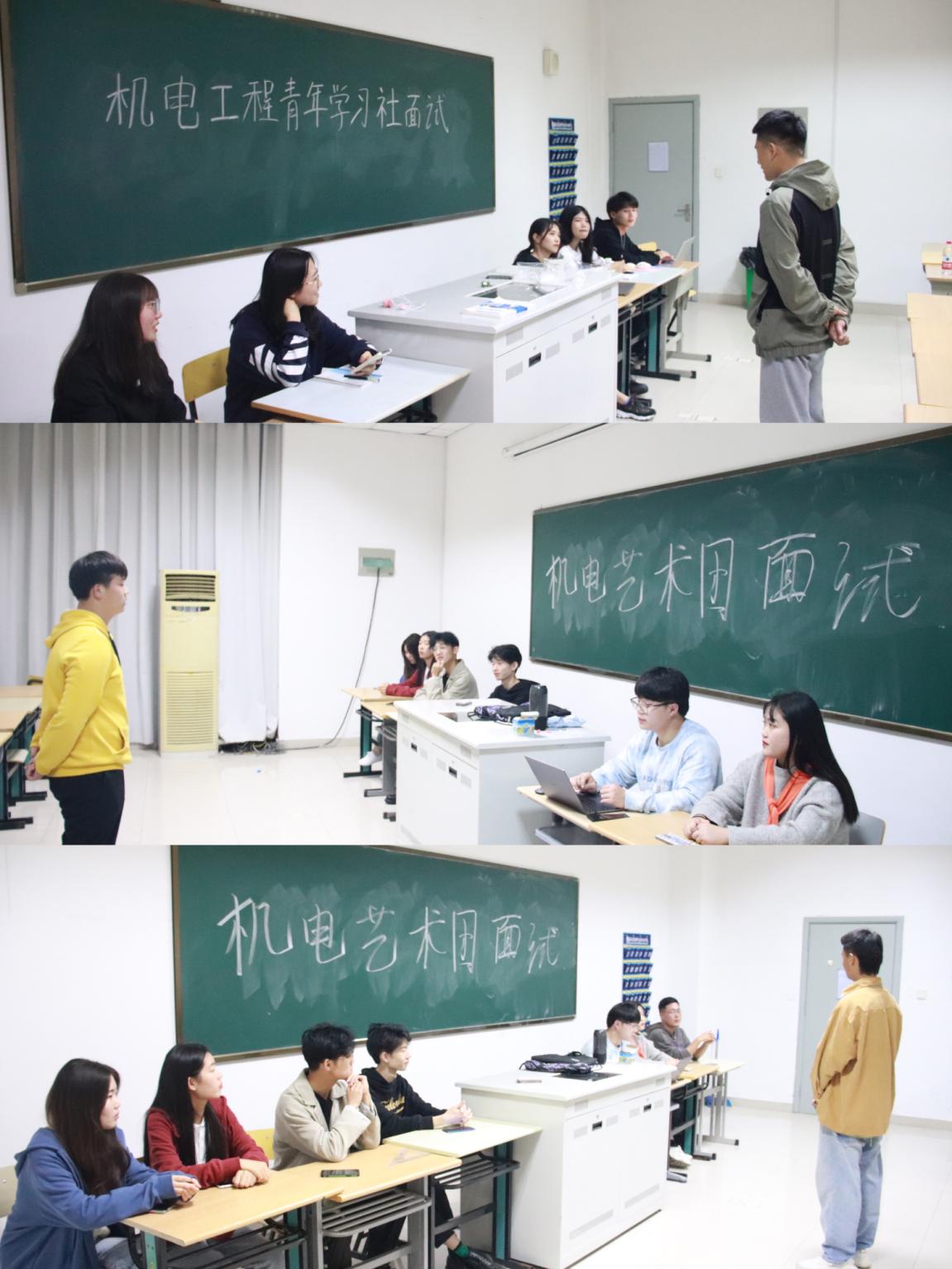 江山代有才人出,团学纳新增新颜。机电工程学院团学组织的招新工作如火如荼的展开,在经过了招新宣传、收发简历、筛选初审人员等一系列工作后,机电工程学院团委于10月21日18:20,在3-124、3-127教室展开了机电工程学院团学组织招新面试活动。机电工程学院分团委书记孙宇珊及机电学院所有学生会干部全程参与组织本次活动。