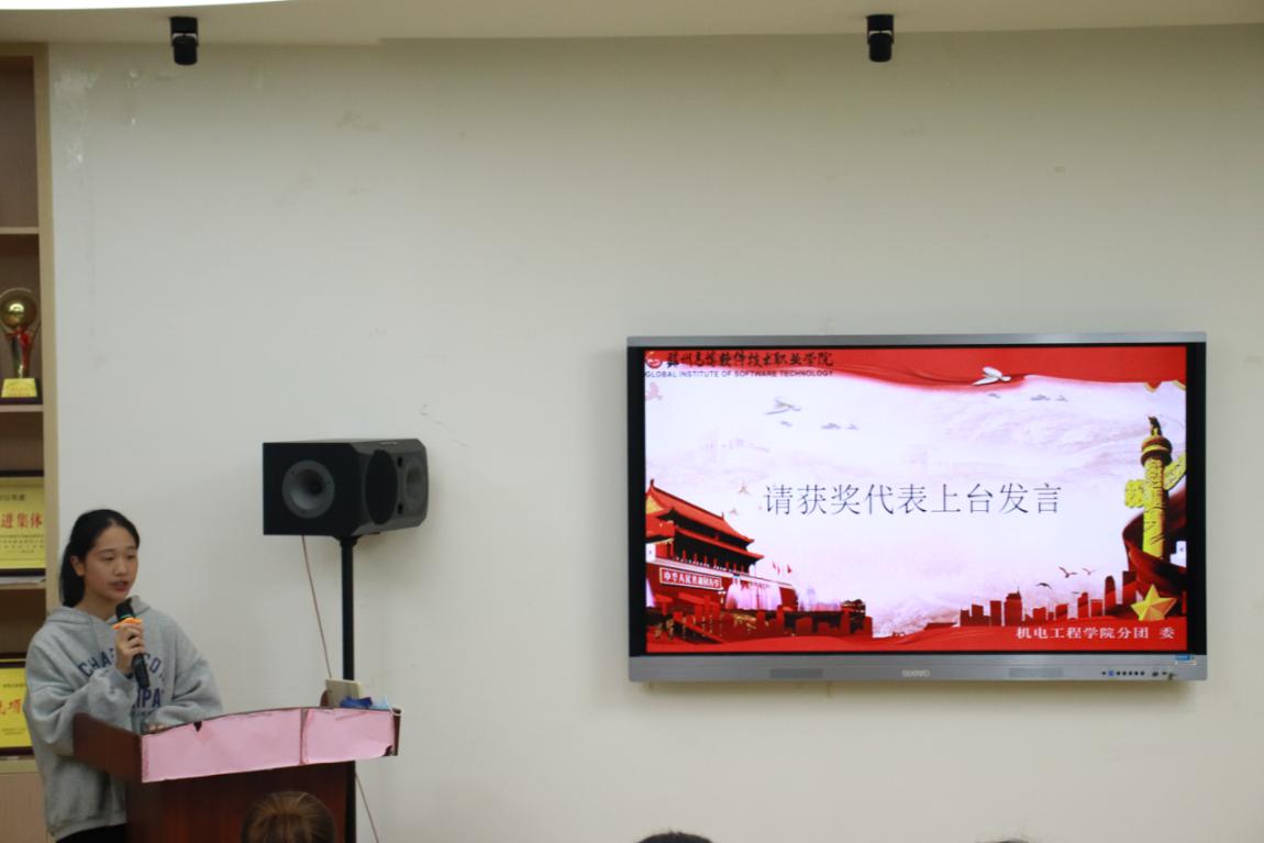 最后,机电工程学院党总支副书记陈粟裕发表讲话,对所有参赛选手的作品作出了充分肯定并鼓励大家大力倡导和弘扬正能量,激发向上、向善、向美的力量,传承良好的精神文明风貌。同学们纷纷表示:作为新时代的青年,将不负使命、不负重托,继续发光发热,展现自己的风采,不辜负老师们的殷切期望。