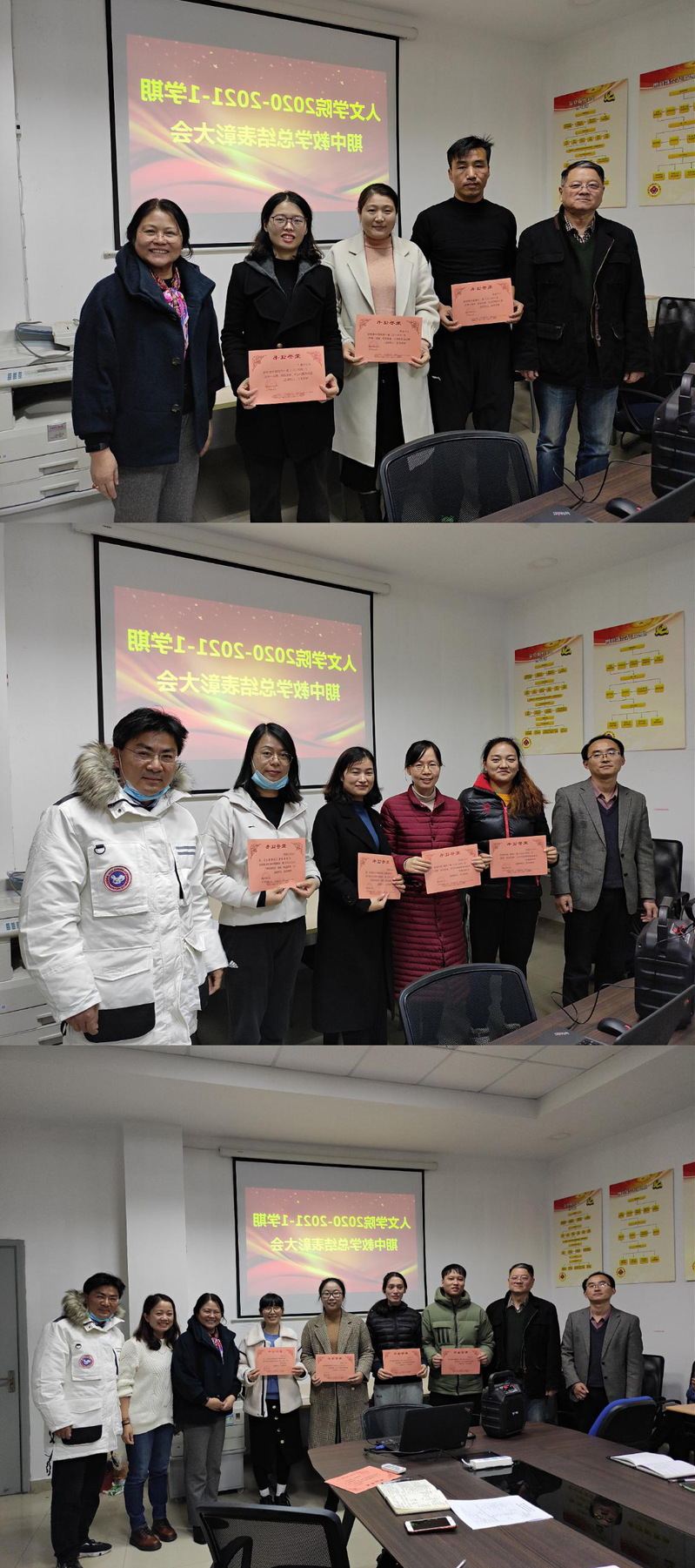 会上,对所有获奖课程教师进行了表彰。结合教学检查中的督导听课、评价、投票等环节,评出示范课一、二、三等奖和新教师新课程奖项,思政课蒋婧杰、英语课王芹、体育课张赞老师分获示范课一、二、三等奖,何冰丽、柴雨点,陆勤芳、吴晓娟分获新教师新课程优秀奖。