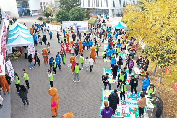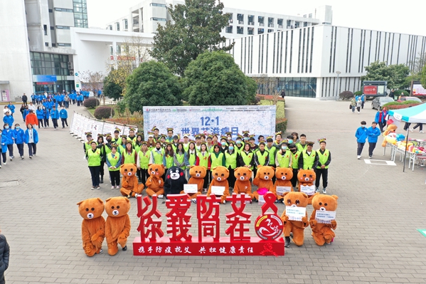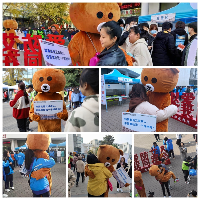 12月1日中午,学生健康教育中心围绕今年的主题“携手防疫抗艾 共担健康责任” 在学校食堂广场举行了“12.1世界艾滋病日”广场宣传活动,琳琅满目的宣传纪念品、憨态可掬的布朗熊、充满童趣的真人飞行棋……吸引了全校师生的目光。