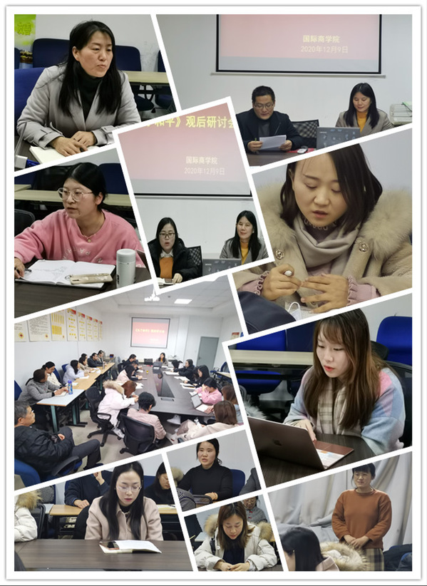 为深入贯彻落实习近平总书记在纪念中国人民志愿军抗美援朝出国作战70周年大会上的重要讲话精神,深入开展“四史”学习,加强新时代爱国教育,教育引导广大师生厚植爱国主义情怀,2020年12月9日,国际商学院全体教职员工集中开展《为了和平》观后研讨会,分享心得体会,会议由张静副院长主持。