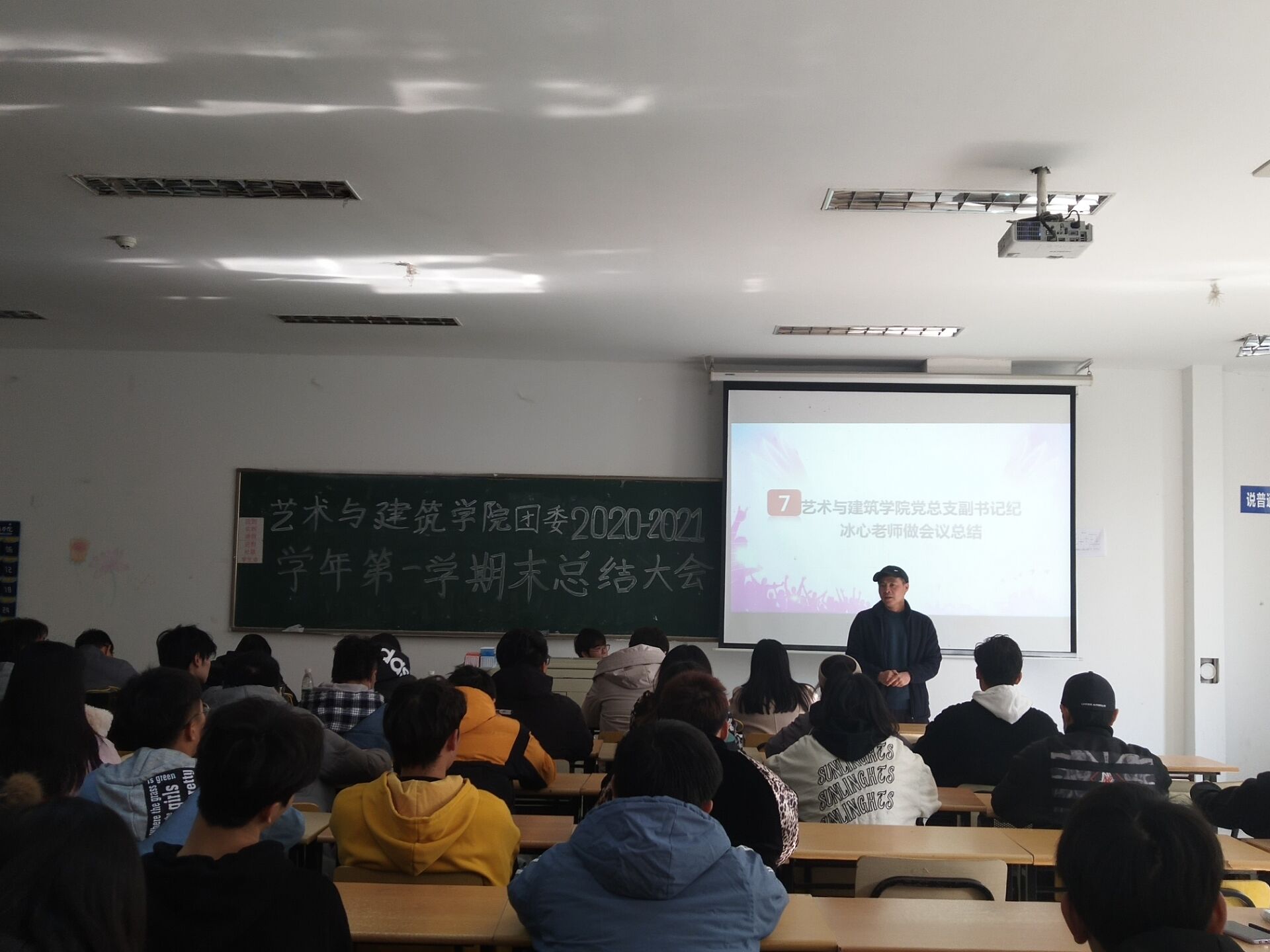 12月29日中午12:20,艺术与建筑学院团委在1-126教室举行了2020-2021第一学期团委学生会期末总结暨表彰大会。我院党总支副书记纪冰心老师、全体辅导员以及48名学生干部参加了本次会议。