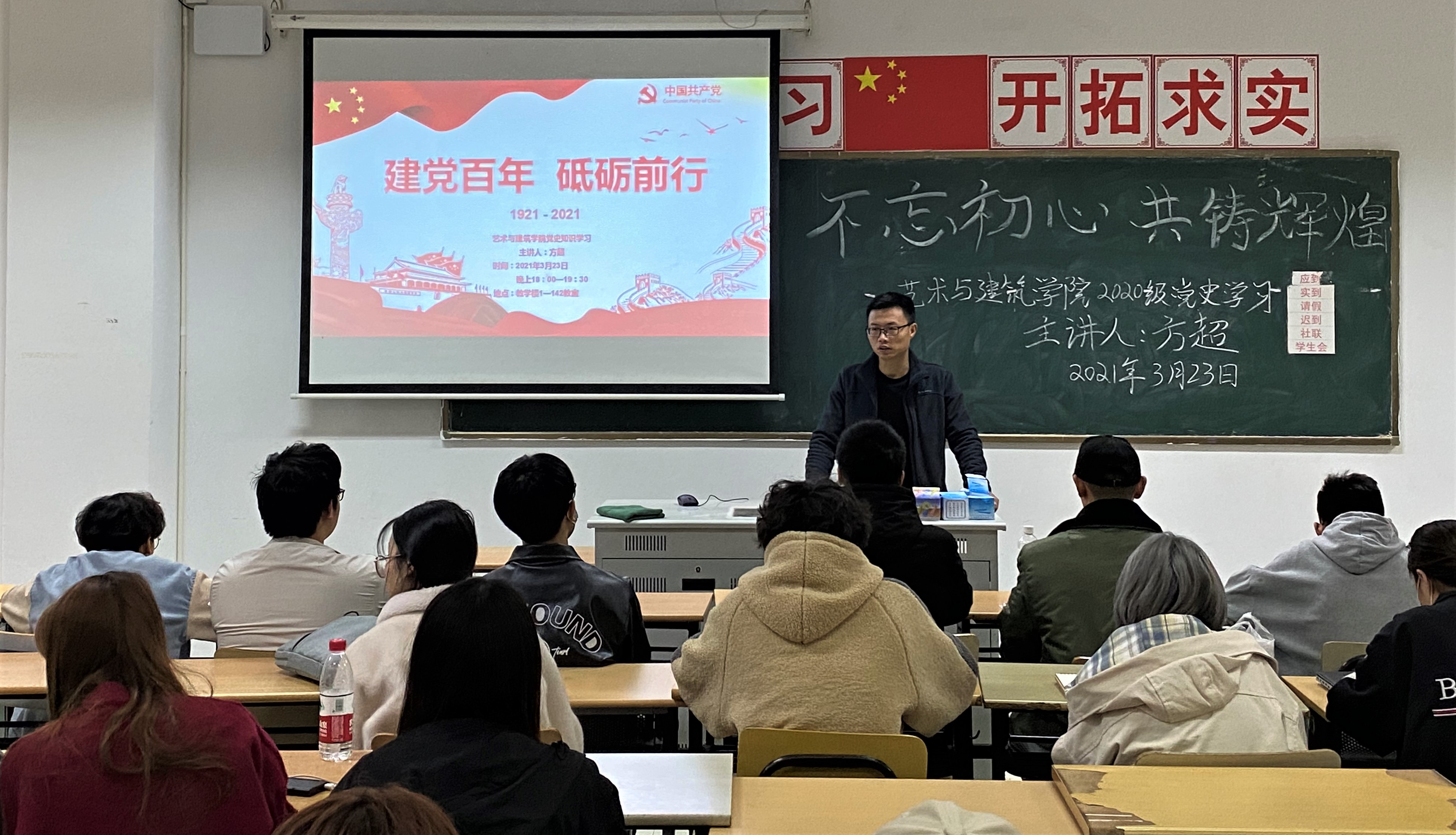 为庆祝中国共产党成立100周年,深入贯彻落实beat365官网召开的党史学习教育动员大会精神,艺术与建筑学院学生党支部于3月23日组织全体党员老师走进课堂,开展党史学习教育专题党课,学生党支部所有学生党员和入党积极分子参加了本次党课。