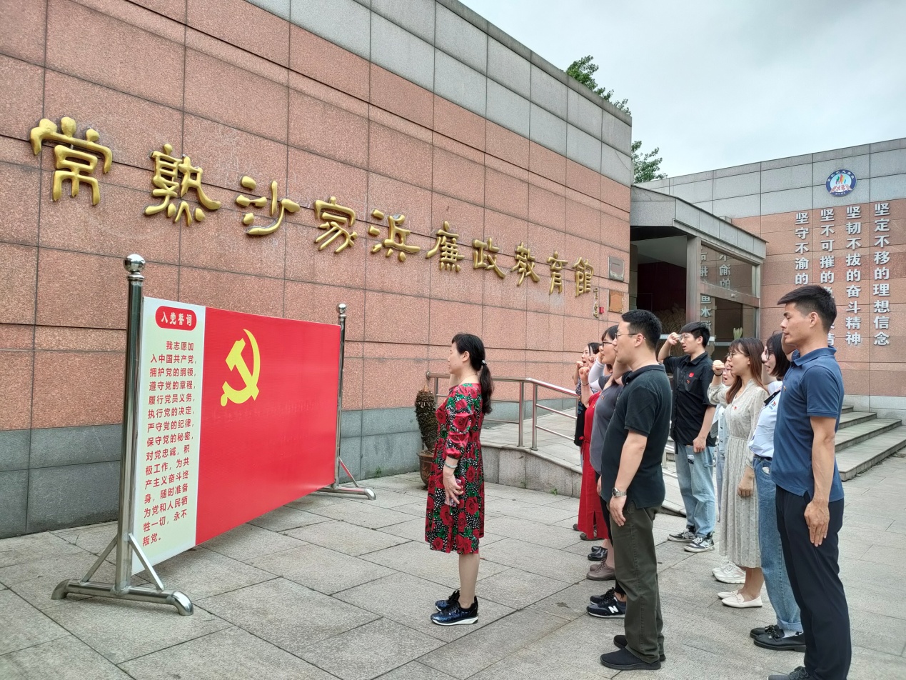 在瞻仰广场和廉政教育馆,支部书记孙小娅带领全体党员面向党旗,庄严地重温入党誓词。以铮铮誓言表达向革命先烈学习的决心、坚守忠诚于党的初心和不懈为党的事业奋斗的恒心。