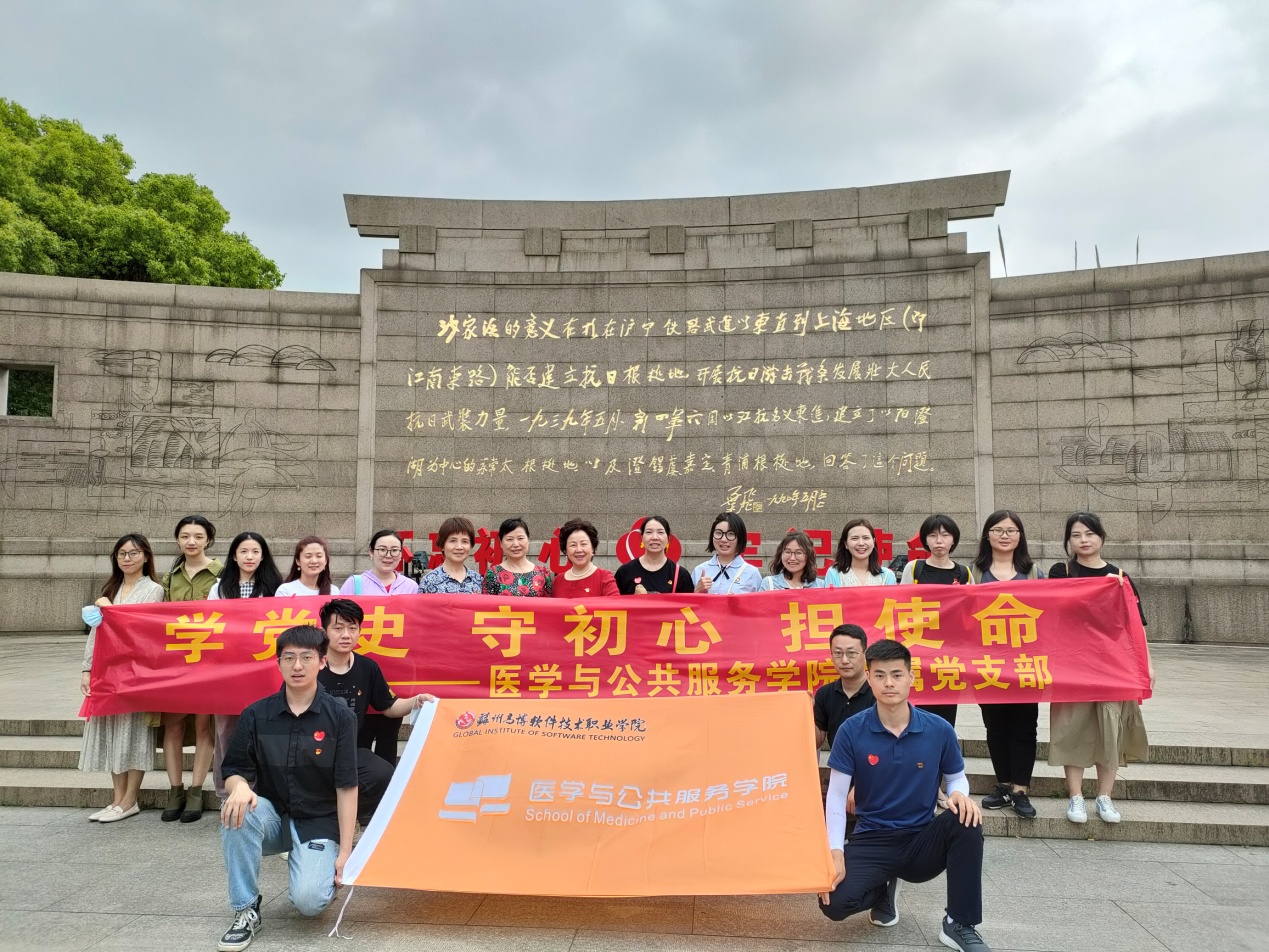 为庆祝中国共产党成立100周年,深入开展党史学习教育,不断增强党员凝聚力和战斗力,5月16日,医学与公共服务学院直属党支部组织全体党员、学院教职工前往革命传统教育基地——常熟沙家浜,开展“学党史、守初心、担使命” 党史学习教育主题党日活动,共同缅怀革命先烈、追忆革命历史。