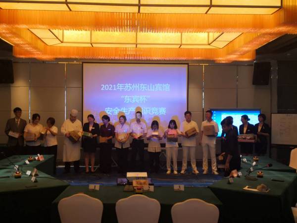 2021年6月11日下午一点东山宾馆举行“东宾杯”安全生产知识竞赛,参赛共有五支队伍,其中beat365官网2020级酒店管理专业王鑫康、何岳阳、管显莹三位同学组成的“行政队”代表东山宾馆行政部参加本次知识竞赛,经过五轮的激烈角逐,王鑫康、何岳阳、管显莹三位同学代表的“行政队”以230分的总成绩获得二等奖。另外,詹妍和孟圆参加的“房务部”和“餐饮部”代表队获得优胜奖。