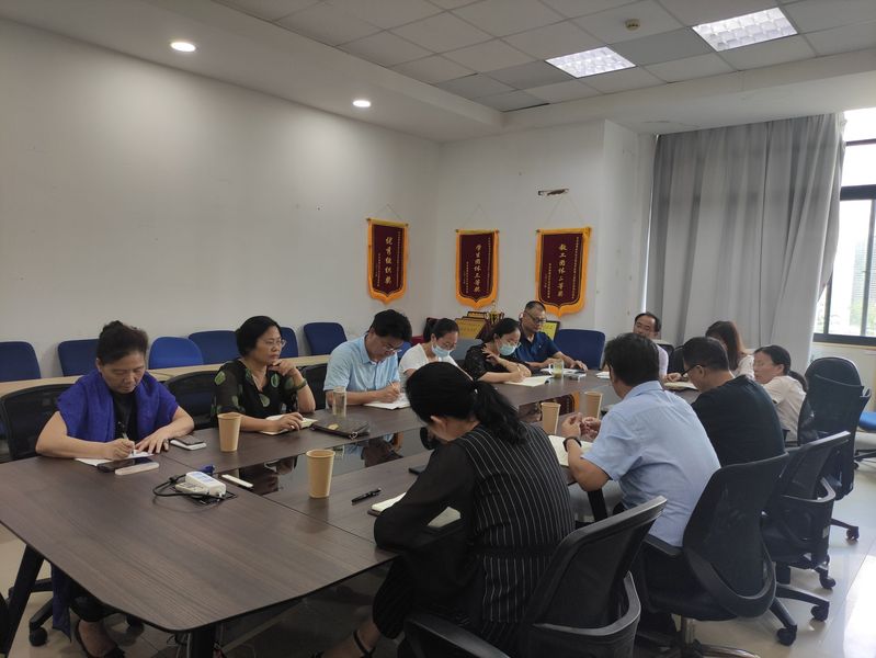 为进一步规范与加强2021-2022-1新学年新学期人文社科学院公共基础课程和专业课教育教学、推动学院公共基础课高质量发展,9月9日下午,分管教学副校长陈家颐、教务处长陆霞、督导室教授雷六七赴人文社科学院专题调研、指导教科研工作。学校党委副书记、副校长、人文社科学院院长倪筱琴、人文学院特聘教授于丽娟、分管人文智库科研副院长陶德胜、分管思政军事社科副院长吴歧范、院长助理卢春林及英语、日语、思政、军事、人文、体育等教研室主任(或负责人)参加会议。