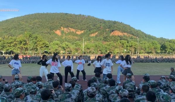 国际商学院学生会成员和大一新生主动承担起这次慰问的节目编排演出,用自己的舞蹈和歌声让新生们感受到凉爽和大家庭对他们的关怀。首先是舞蹈表演,学生会成员大显身手,优美的舞姿使全场掌声不断。紧接着,教官们的表演和同学们的军体拳表演更是将现场氛围推向高潮。