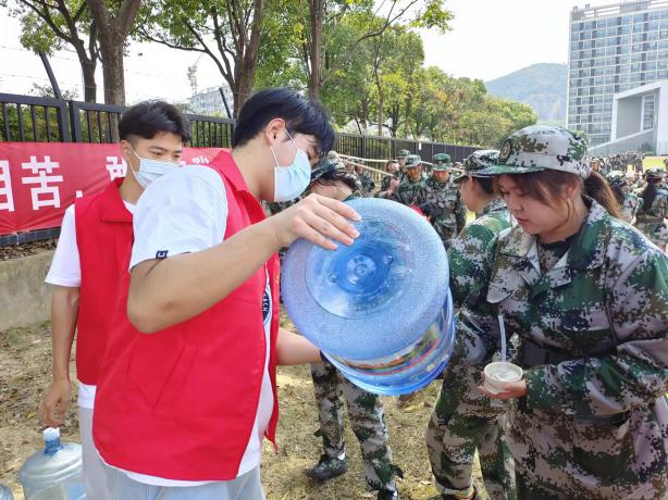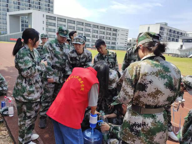 休整期间,志愿者们热情地给同学和教官送水,表达对参训同学的鼓励以及对教官的由衷敬佩。在学长学姐的鼓励下,参训新生被晒得通红的脸上多了几分坚定和勇敢。本次军训慰问虽然只有短短两个小时,但却实实在在让新生感受到医学与公共服务学院大家庭的温暖,也为他们接下来的军训生活提供不竭的精神动力。