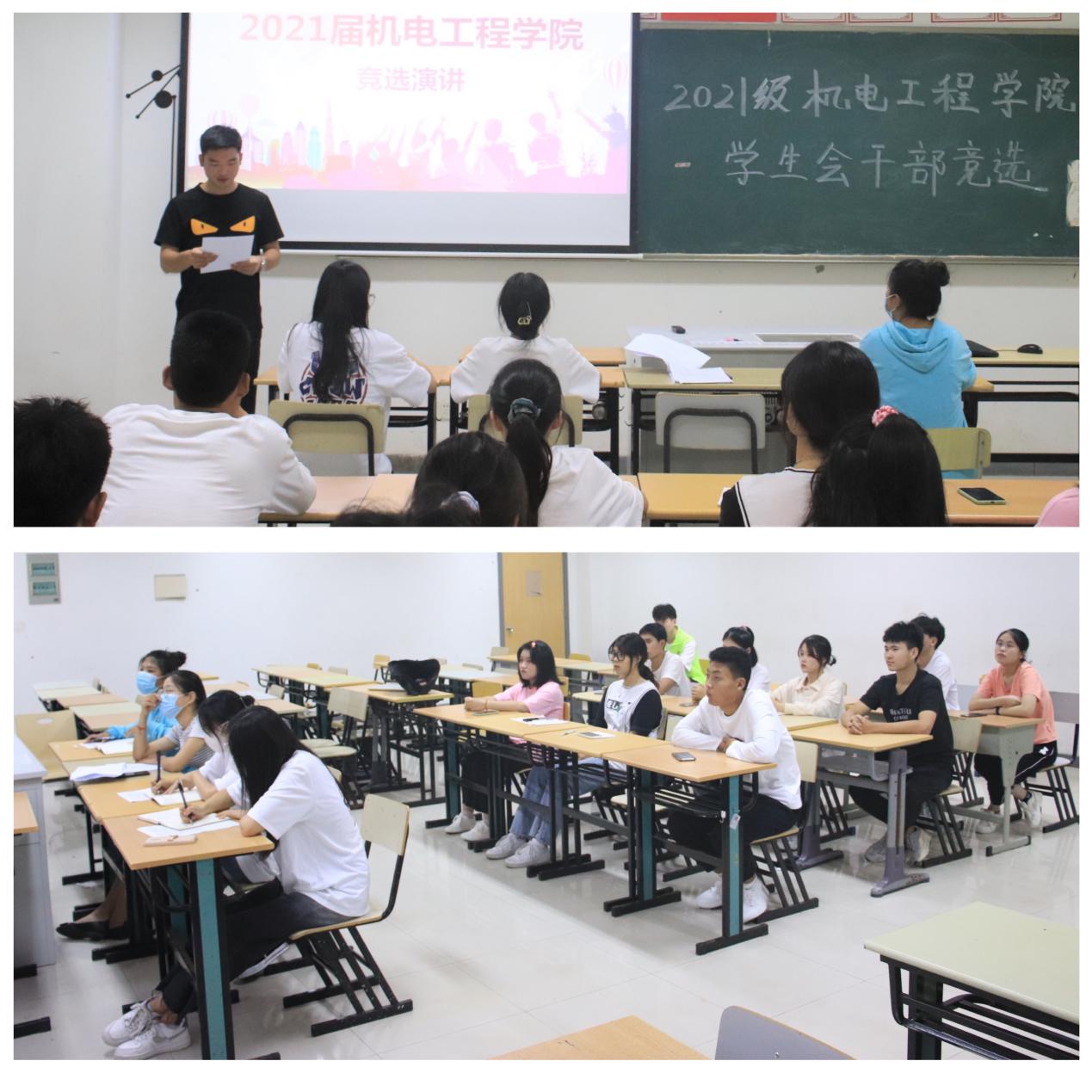 为进一步完善和规范我院学生干部的选拔任用工作,加强学生干部的队伍建设,结合机电工程学院实际,秉承着“公平,公正,公开”的原则。机电工程学院分团委于2021年9月27日中午12:30在教学楼12-111举办“机电工程学院2021级团学组织换届大会”。本次竞选由机电工程学院团委书记孙宇珊、机电工程学院学生会主要学生干部担任评委。