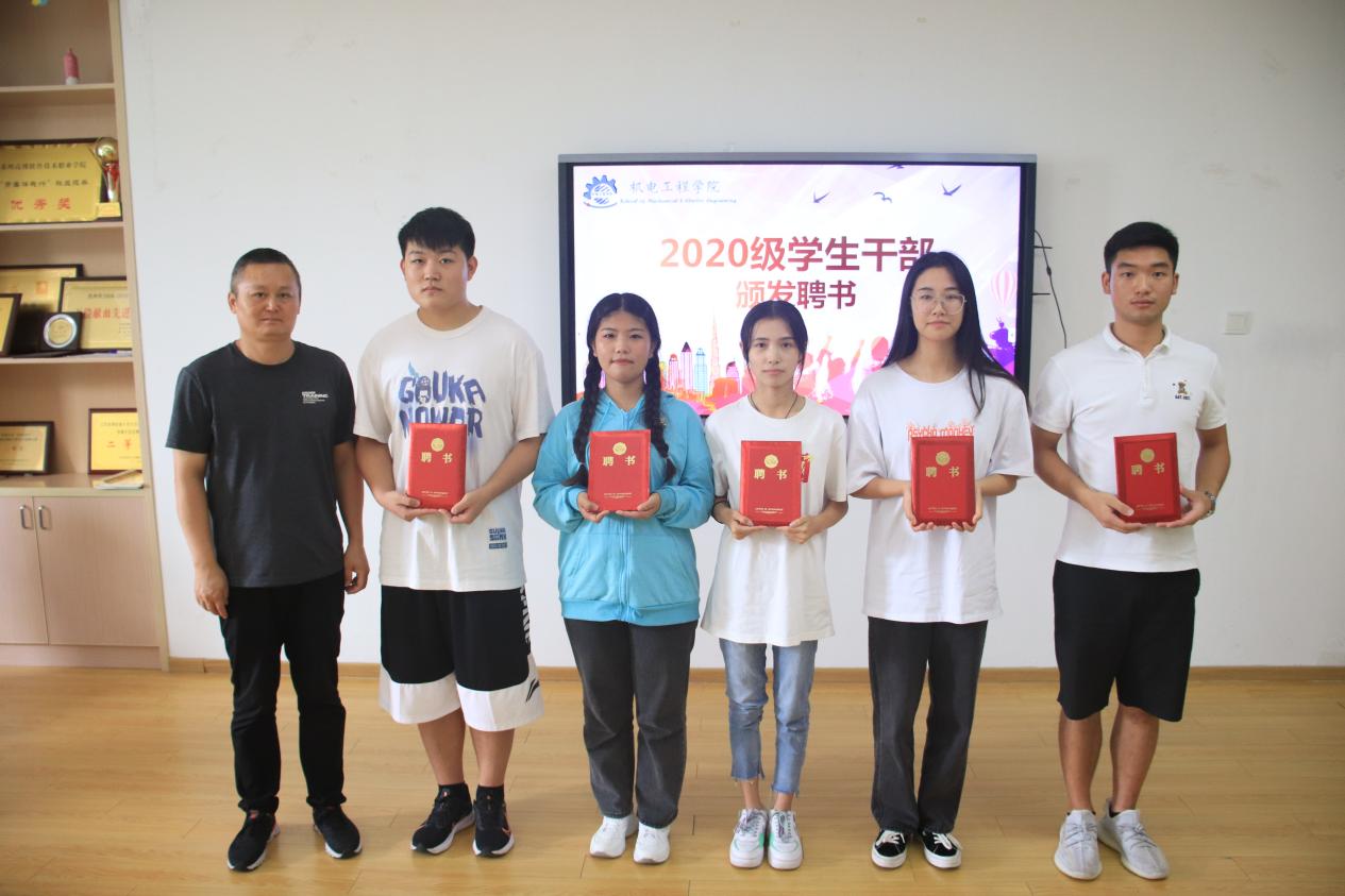 竞选结束后,机电工程学院党总支副书记陈粟裕老师为2020级优秀学生代表颁发聘书,并合影留念。