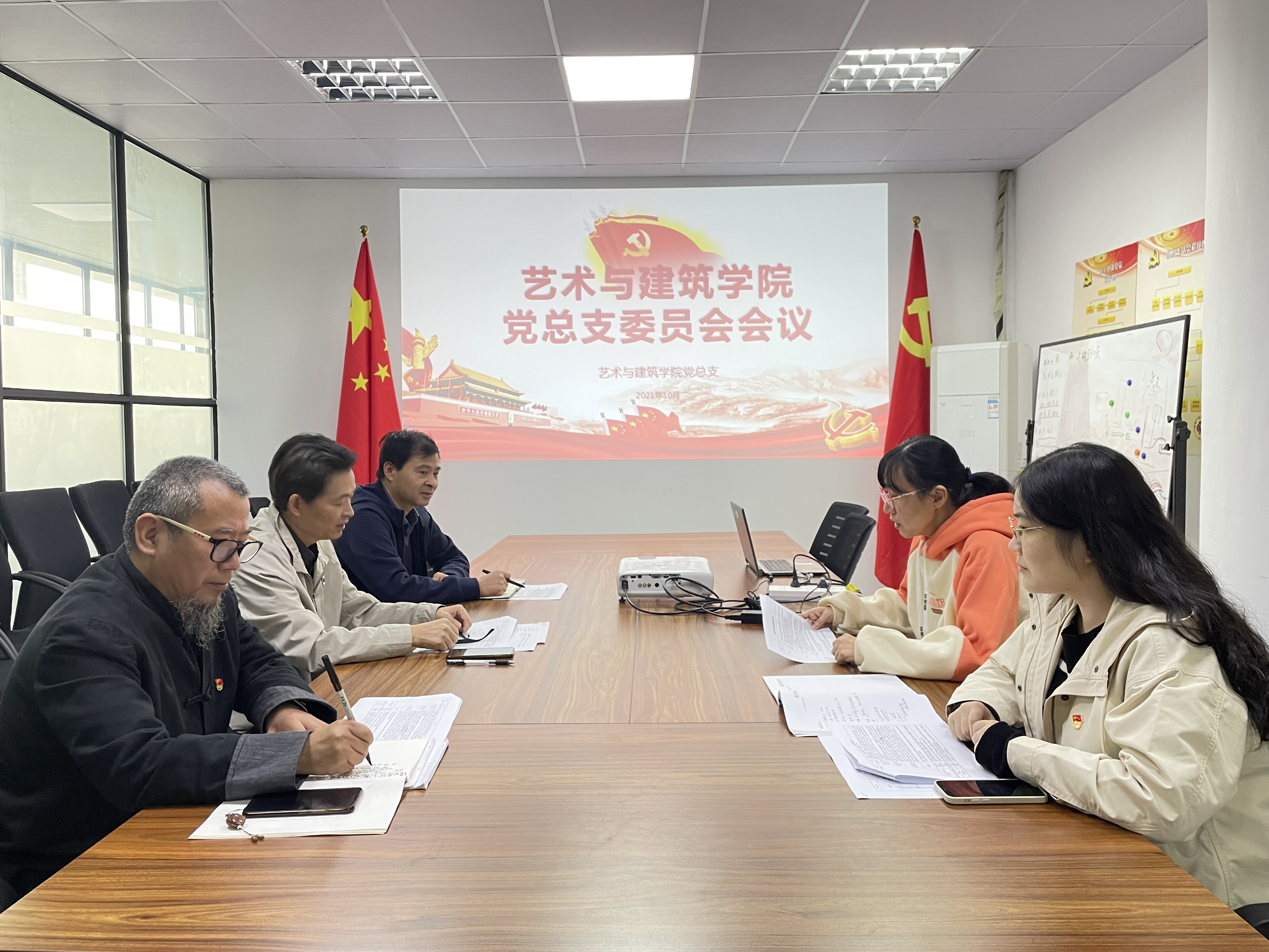 为推动党史学习教育取得扎实成效,提高思想认识和政治站位,把开展党史学习教育作为一项重大政治任务。10月19日上午9:30在艺术与建筑学院党员活动室召开“党总支委员会会议”,会议围绕《党史学习教育巡回指导清单》开展学习讨论和对照。党总支书记、副院长施建平教授,党总支副书记纪冰心,组织委员李一帆,宣传委员吴兵,纪检委员张斌参加了会议。