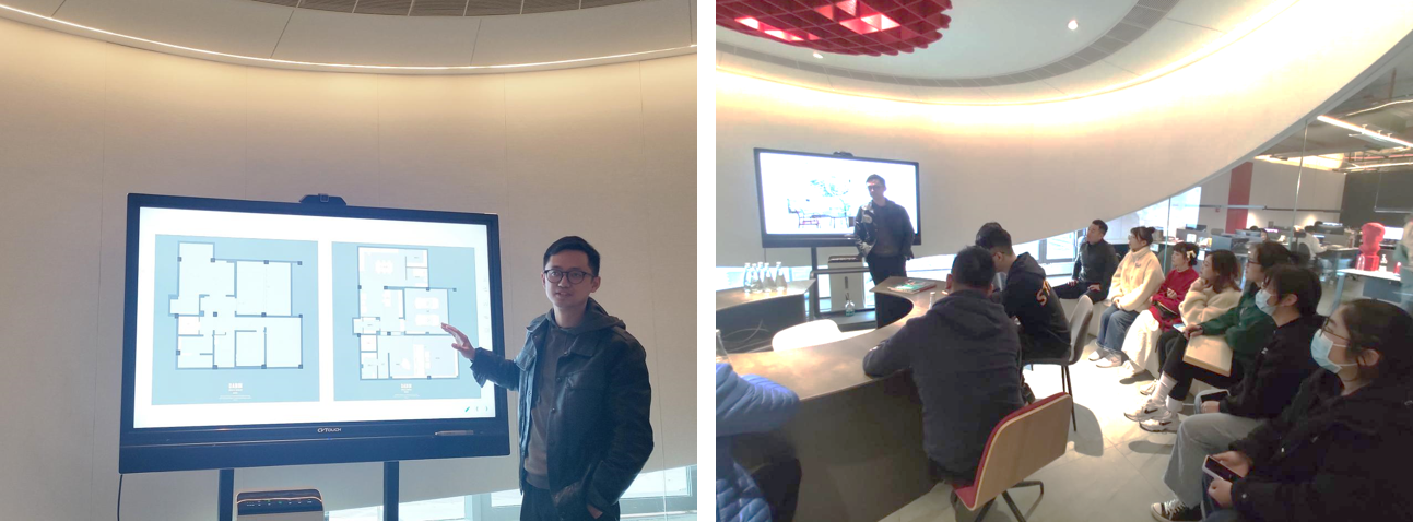 大斌空间设计是一家以室内设计、家居配饰设计、软装及工程咨询为一体的设计公司。创始人王斌先生对我院师生的到来表示欢迎。随后,主创设计师曹亮为同学们深度剖析了“康帝庄园项目”,从方案设计、施工,到空间改造、材料选择、灯光设计、软装设计、家具选择等方面进行讲解,让同学们真切感受到设计背后逻辑思维能力的重要性,代入式体会“舒适”作为住宅空间设计的核心。案例分享过程中,师生们就方案中的一些设计理念、工艺做法、材料选用等问题与设计师及大斌空间设计的王斌先生进行了交流。一次别开生面的项目教学,给师生留下了深刻印象。